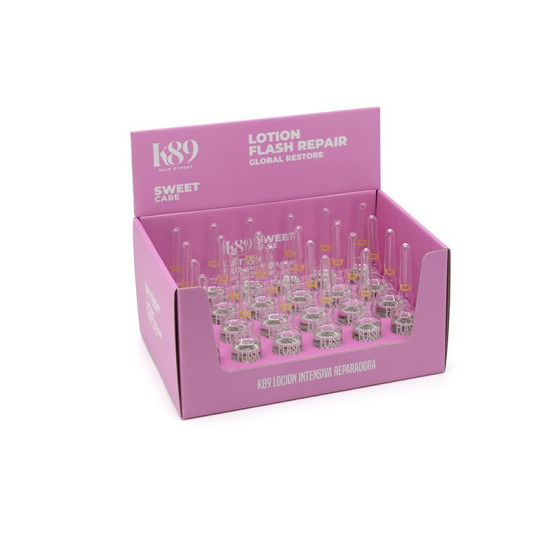 K89 Tratamiento de Ampolllas Global Restore Flash Repair Lotion, tratamiento de ampollas Flash-Intensivo para la reestructuración del cabello dañado, seco o tratado químicamente. Las ampollas Flash Repair Lotion son un tratamiento de reestructuración intensiva flash para cabello seco, dañado o tratado químicamente. Es un compuesto de oligoelementos que, en combinación con cualquiera de los tratamientos de la línea Sweet Care, maximiza sus efectos.