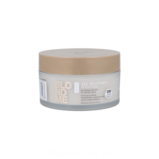 Mascarilla Schwarzkopf Blondme Keratin Restore All Blondes Mascarilla Detox, reestuctura, hidrata y deja tu cabello rubio, con fuerza y firmeza. Componentes naturales hacen que el cabello rubio rejuvenezca.