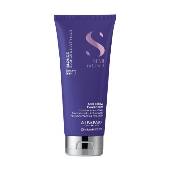 Acondicionador Alfaparf Semi di Lino Blonde Anti-Amarillo, especifico para cabello rubio, neutralizador de reflejos amarillentos