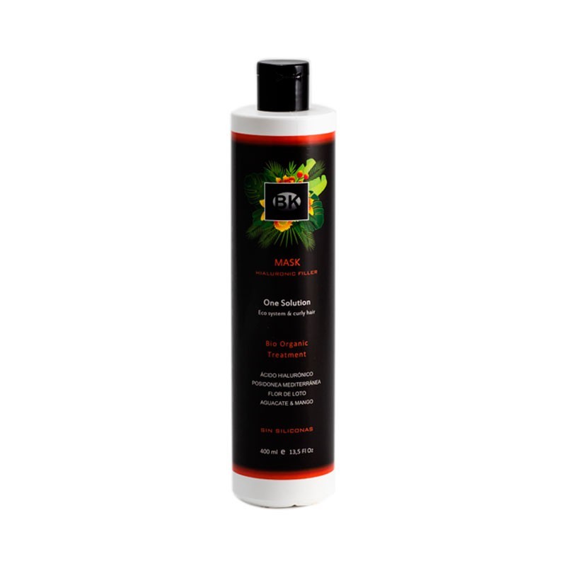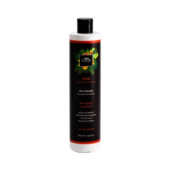 Mascarilla Hyaluronic Filler Bioker One Solution 400 ml es una mascarilla de hidratación capilar con efecto relleno para cabellos finos y delicados, formulada con complejo Hyaluronic Filler (ácido hialurónico, posidonea y flor de loto) que rellena, regenera y nutre la fibra, aportando brillo, suavidad y resistencia y prolongando el tratamiento Bioorganic efecto Botox de Bioker